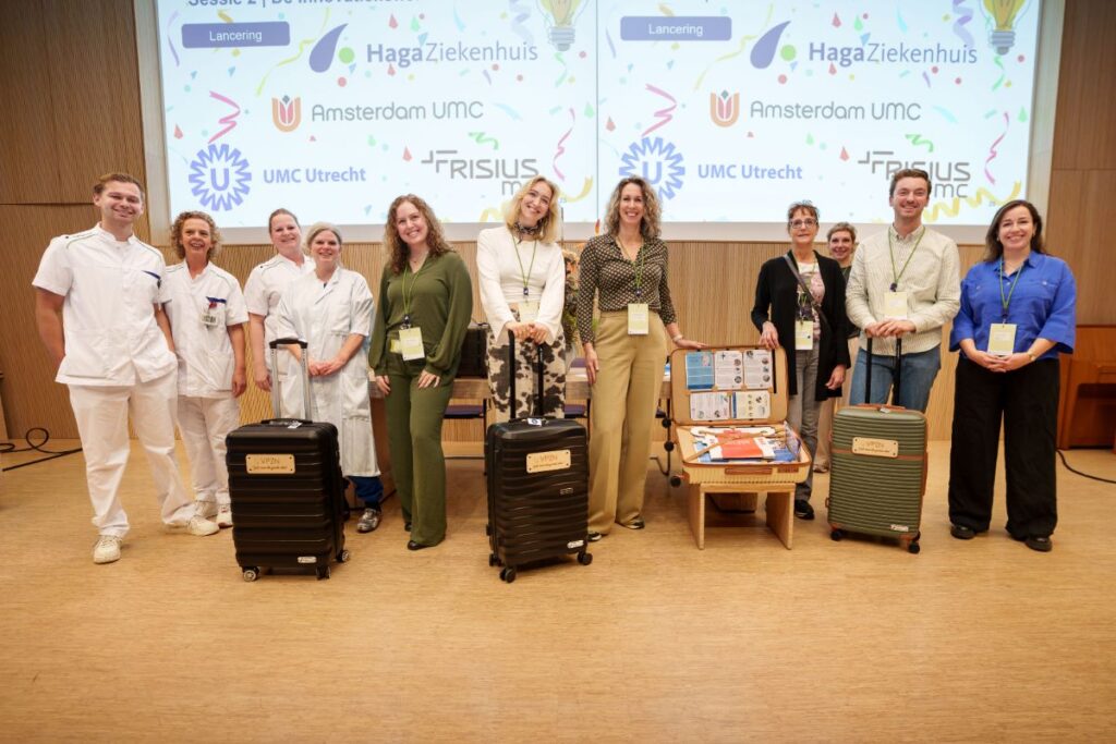 We zijn trots dat de innovatiekoffer, naar een idee van het HagaZiekenhuis en De Haagse Hogeschool / The Hague University of Applied Sciences, enthousiast is ontvangen binnen het VPZN-netwerk. Onze eigen verpleegkundigen uit de VCR Innovatiedeelraad mochten de koffer namens ons ziekenhuis in ontvangst nemen en helpen hem naar (verpleeg)afdelingen te brengen.